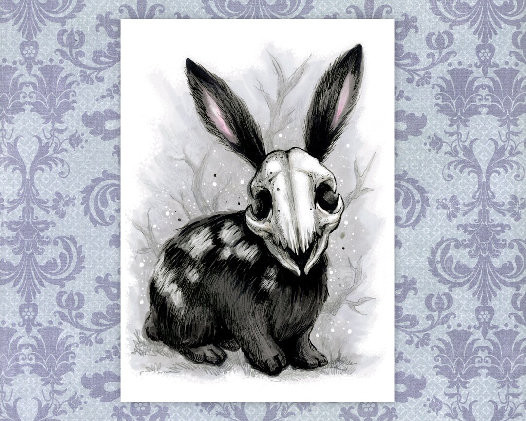 Rabbit Skull Art Print 5 X 7 Horror Bunny Etsy Australia